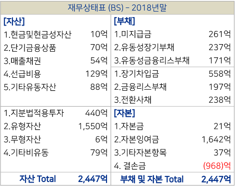위에서 쏘카의 어려운 점들을 많이 말씀드렸는데요. 재무상태표와 함께 보며 2018년말 현재의 상태는 어떠한지 살펴보겠습니다.