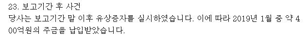 자동차만 안사면 일단은 버틸만하다는 뜻이고요. 실제로는 2019년 1월에 400억원을 추가로 유상증자하며 현금이 몹시 부족한 상황은 피하게 되었습니다.