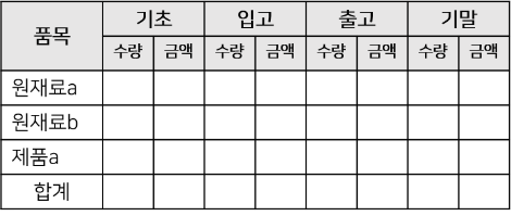 소규모기업의 경우 재고자산수불부(재고자산의 흐름을 기록한 표)를 관리하고 있지 않은 경우가 많은데요. 아래와 같은 형식의 표가 필요합니다.