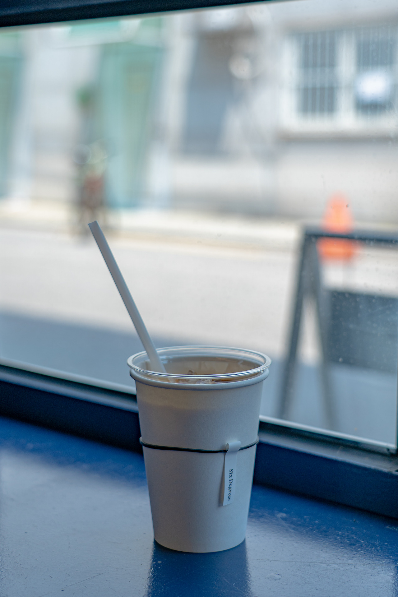 셋째, 사랑스러운 고양이가 살고 있다. 원래 길에서 살던 녀석이었지만 식스 디그리스가 생긴 후 자주 방문하다 거의 눌러앉아버렸다고 한다. 바리스타가 ‘모나미’라는 이름까지 지어주었다는데, 검은색과 하얀색이 절묘하게 섞인 모습이 이름과 찰떡 같이 어울린다. 처음에는 손님이 오면 도망가기 바빴다지만 이제는 가게의 마스코트가 되고 손님들이 와도 팔자 좋게 드러누워서 사랑을 듬뿍 받고 있다. 인스타 계정(@monaminyang)도 있는 인싸 고양이이니 꼭 그 귀여운 모습을 좇아보자.