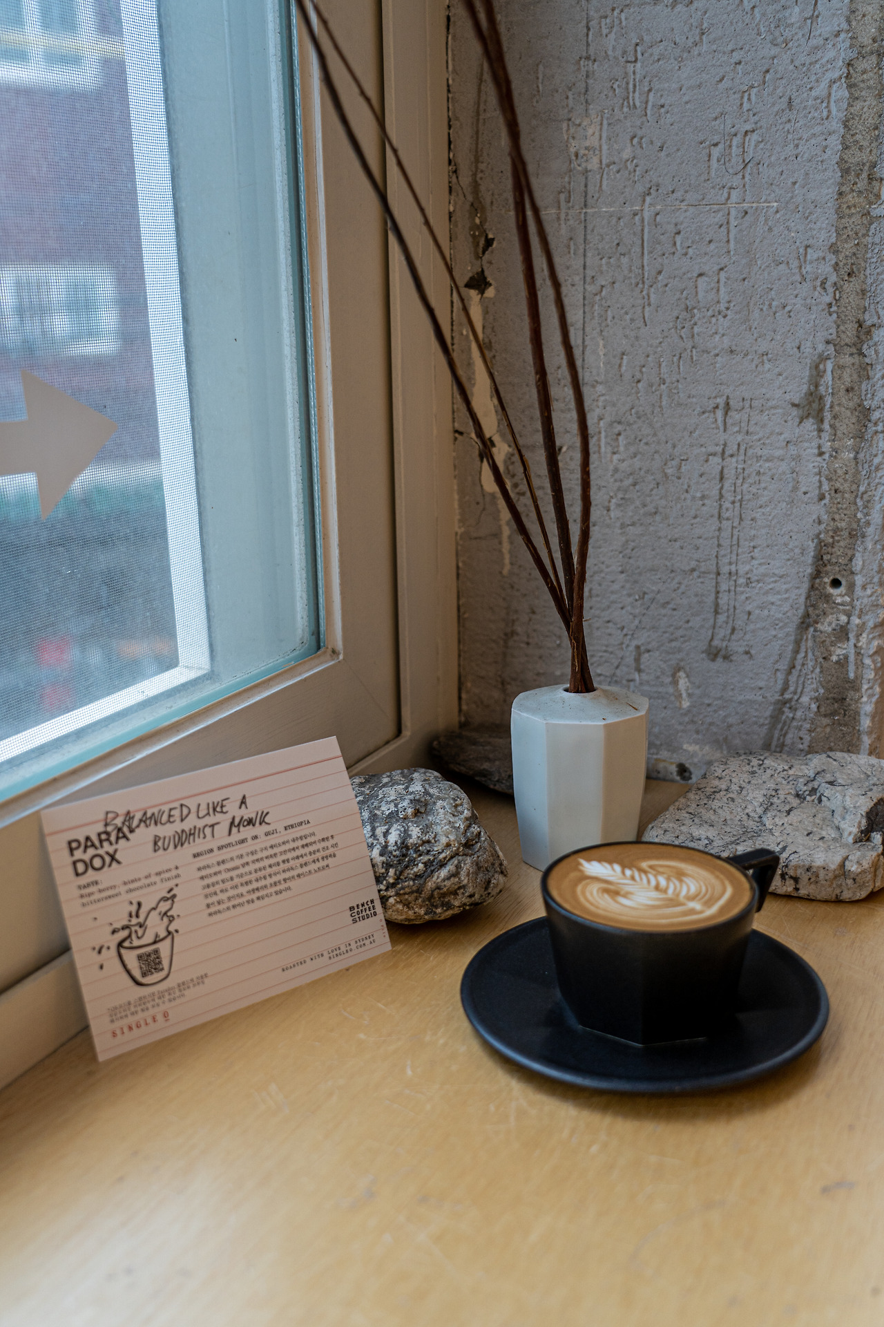 커피 메뉴를 보면 싱글오에서 엄선한 싱글 오리진 리스트와 함께 자체 블렌드인 리저뷰어(RESERVOIR)와 파라독스(PARADOX)까지 모두 제공하고 있다. 싱글 오리진으로 내린 커피도 좋지만 자체 블렌드로 내린 플랫화이트를 마셔보자. 쌉싸름한 느낌의 독특한 원두의 맛과 향을 즐길 수 있을 것이다. 커피 외에도 다양한 종류의 내추럴 와인이 구비되어 있으니 저녁 에들러 조용히 와인 한 잔을 즐기고 오는 것도 좋을 듯싶다.