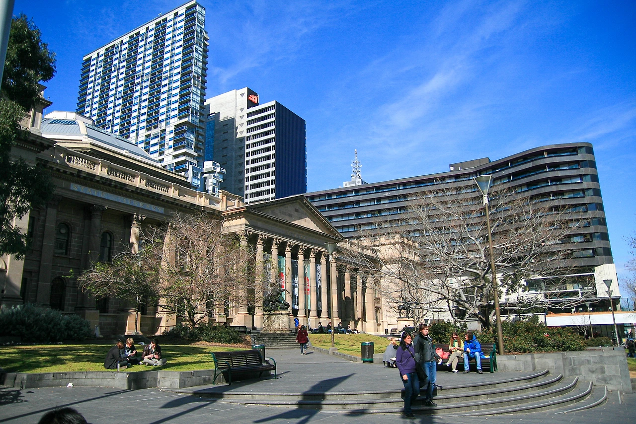 첫 외출은 안전하게 셔틀버스를 이용했다. 30여분을 달리던 버스는 멜버른 시내로 들어섰고, 빅토리아 주립 도서관(State Library of Victoria) 옆 쪽에 있는 오먼드 스테츄(Ormond Statue) 앞에 정차했다. 역시 시내가 좋다. 사람들로 북적이고 생기가 도는 분위기에 마음이 들썩들썩했다. 버스가 정차한 바로 앞에 있는 멜버른 센트럴 스테이션(Melbourne Central Station)을 중심으로 빅토리아 주립 도서관, 쇼핑몰 등이 밀집해있어 신생아처럼 눈을 크게 뜨고 주변을 이리저리 훑어봤다.