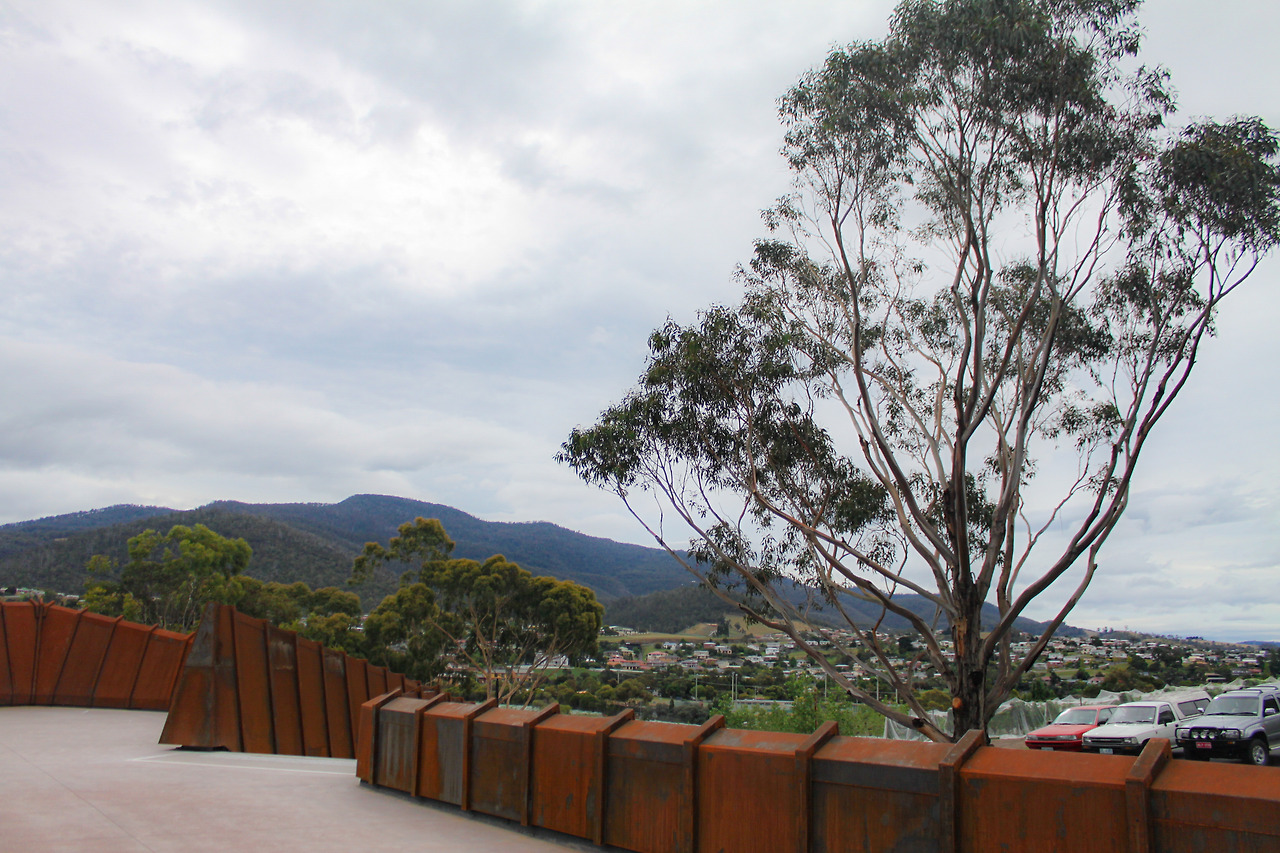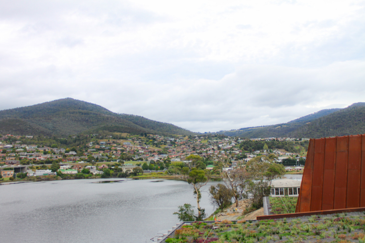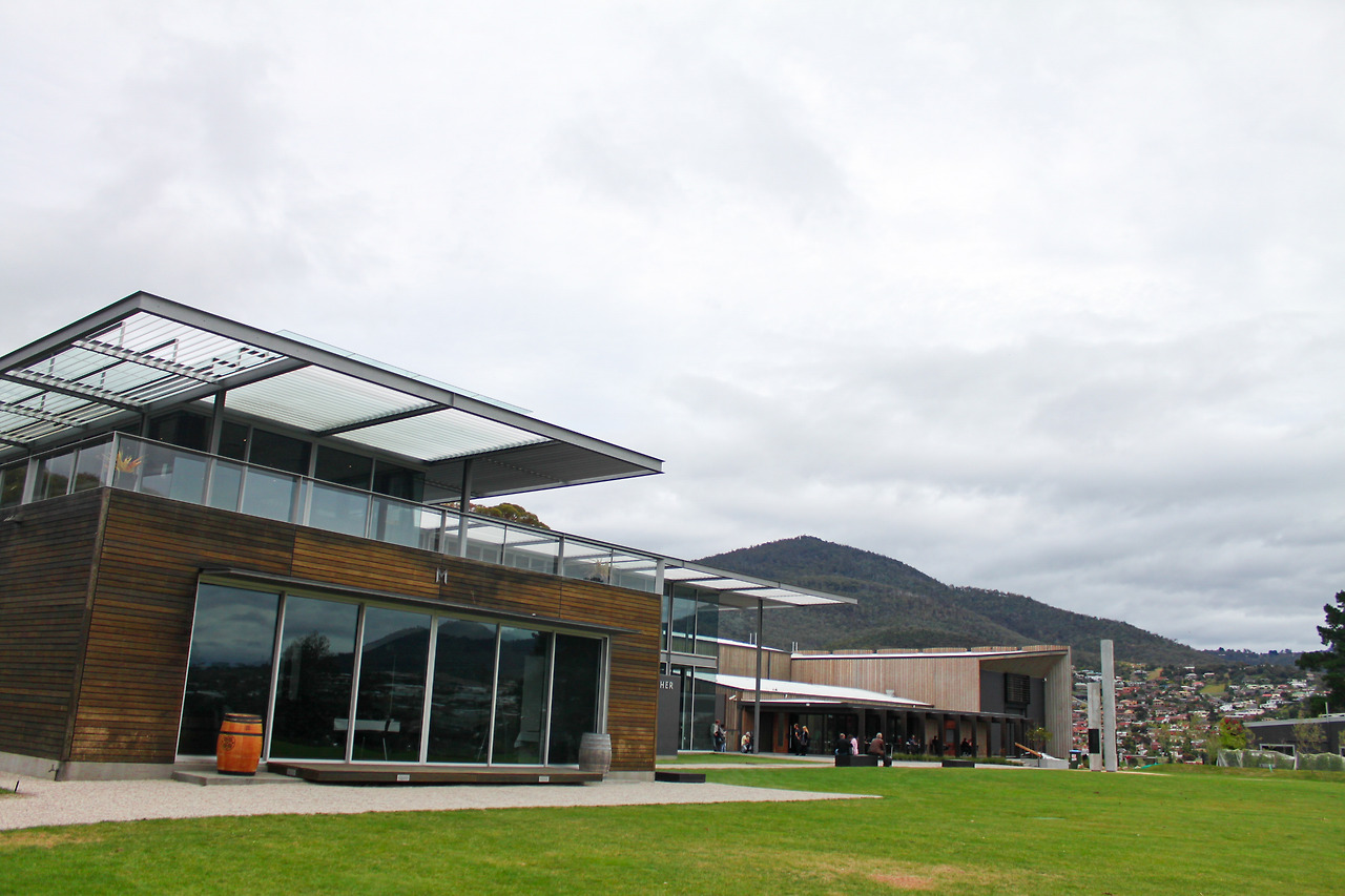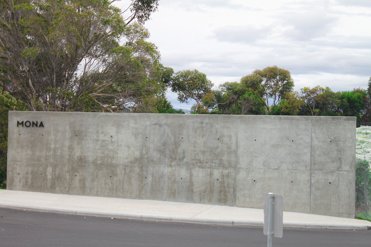 1시간여를 달리던 중, 강 너머 멀리 무언가가 눈길을 끌었다. 수많은 전투를 거치고 헤져버린 성곽처럼 거친 속살을 드러낸 녹슨 건물이었다. 안내소 직원이 말한 미술관이 머릿속을 스쳐 지나갔다. 시간도 많으니 둘러보기 위해 방향을 틀었다. 입구에 적힌 심플한 MONA라는 이름에 뉴욕의 MOMA 미술관이 떠올랐다. 포도밭이 이어진 길을 쭉 따라 올라가며 살짝 기대에 부풀었다. 생각했던 것보다 부지가 꽤 컸다. 미술관을 찾기 위해 한 바퀴를 돌아봐도 보이는 건 식당처럼 보이는 2층짜리 건물 두어 개와 넓은 광장, 강가를 조망할 수 있는 쉼터 정도였다.