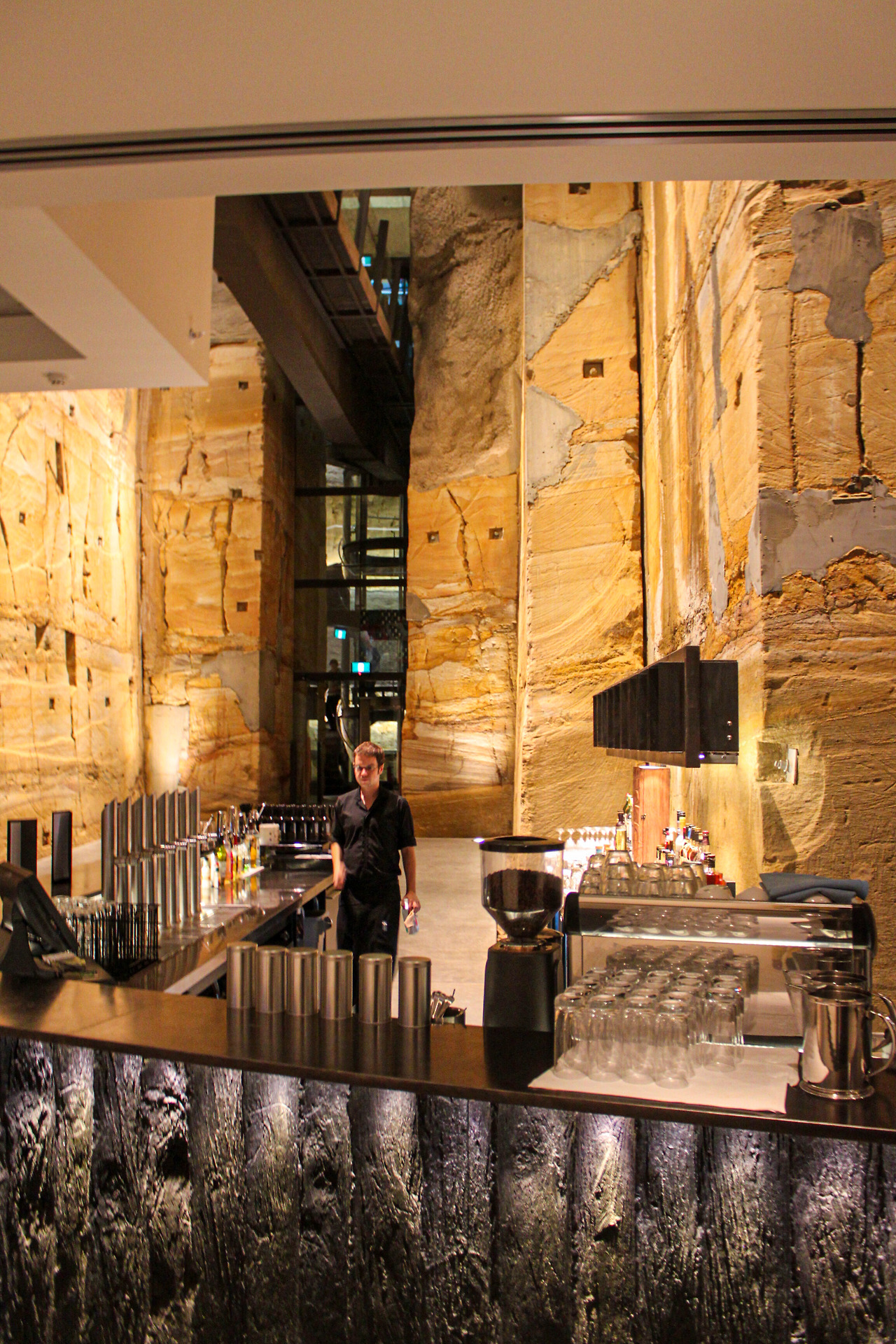 문을 열고 들어가니 전면 디스플레이에 ‘Museum of Old and New Art’라는 글자가 띄워져 있었다. 올바르게 찾아왔음을 확신하고 주위를 둘러봤지만 안내데스크와 보관함, 엘리베이터 이외에는 아무것도 없었다. 가방을 맡긴 확인증과 내부 안내용 앱이 설치된 아이팟을 들고 엘리베이터로 안내받았다. 그리고 신세계로 내려갔다.