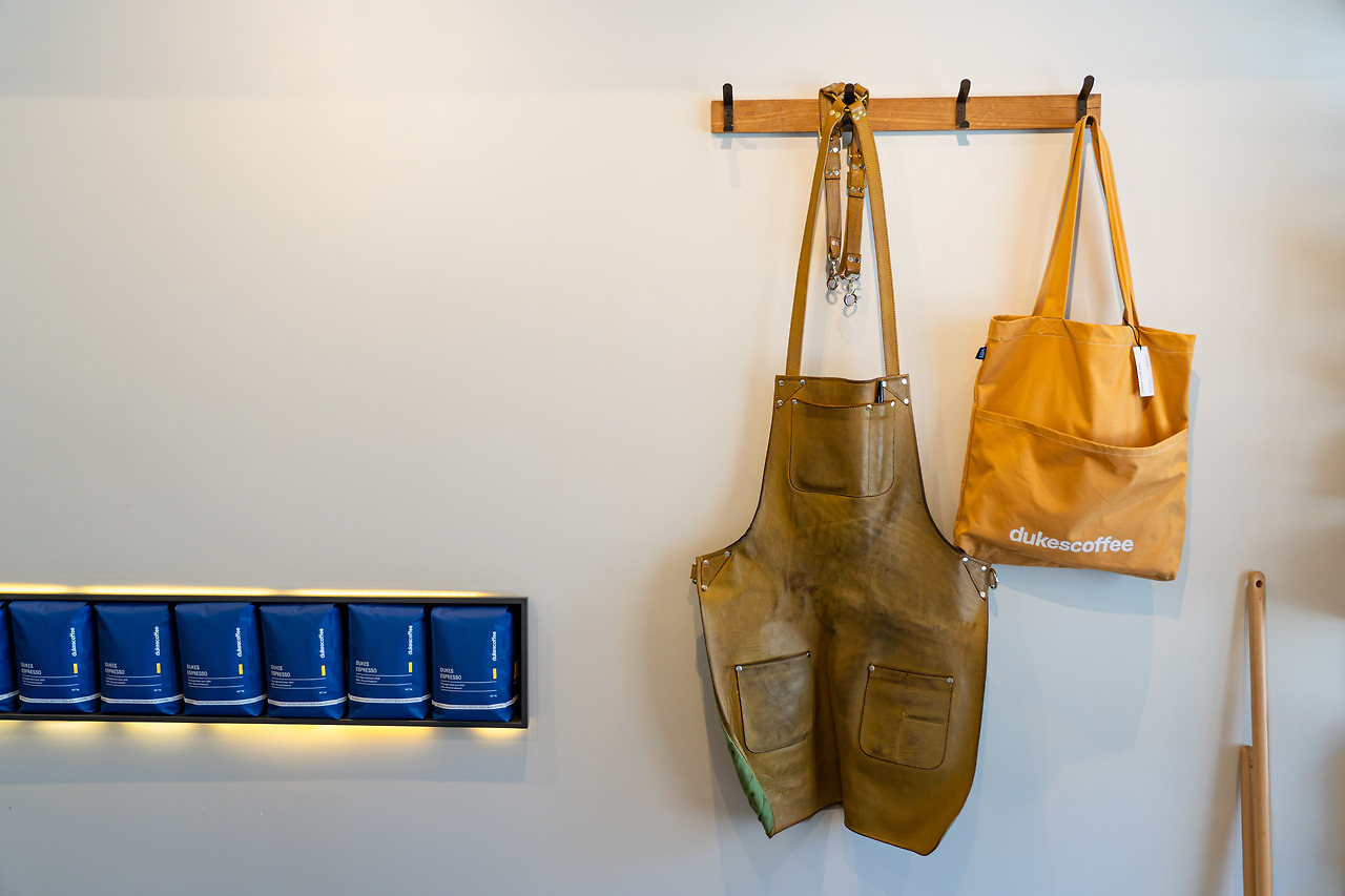 원두는 에스프레소용 블랜드와 싱글 오리진부터 필터용 싱글 오리진까지 모두 준비되어 있다. 싱글 오리진 원두는 때에 따라 종류를 바꿔가며 계절마다 시즌 베스트 등을 선보인다. 특히 2008년, 듁스커피의 시작부터 함께 한 듁스 에스프레소 블렌드(Dukes Espresso Blend)는 에스프레소나 롱블랙으로 내려 마셔도 밸런스가 좋고 풍부한 바디감을 느낄 수 있지만 라테나 카푸치노 등 우유와 어울릴 때 그 맛이 더 극대화된다. 편견일지도 모르지만 역시 멜버른에 기반을 둔 로스터리인 만큼 우유와의 궁합이 좋다는 생각이 든다.
