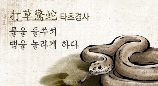고대 중국의 병법인 《삼십육계비본병법(三十六計秘本兵法)》의 제13계에 해당하는 사자성어.(칠 타, 풀 초, 놀랄 경, 뱀 사)