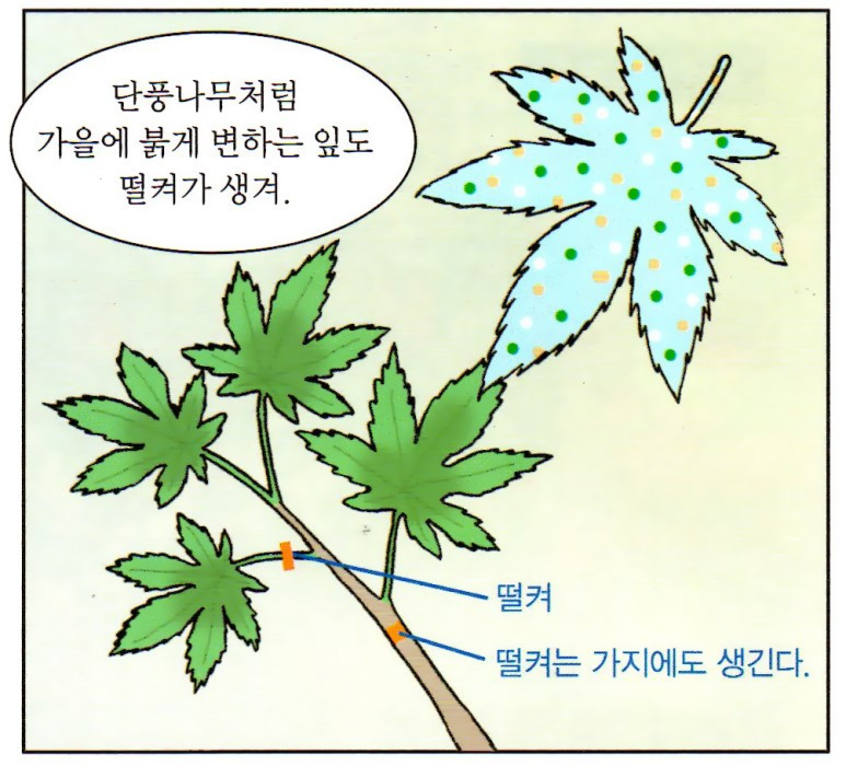 잎과 가지를 잇는 경계선에 생성되는 것으로 코르크처럼 단단한 세포층을 말합니다. 떨켜는 가지에서 잎 자루로 연결된 통로를 차단하는 역할을 하는데 이렇게 되면 기공이 막히고 수분과 양분이 오고 갈 수 없게 됩니다. 덩달아 엽록소의 합성도 멈춥니다. 잎의 생명 활동은 치명타를 입게 됩니다. 나뭇가지에 붙어있을 힘이 없다보니 약간의 바람이 스치기만 해도 떨어질 수밖에 없는 낙엽이 되고 맙니다.