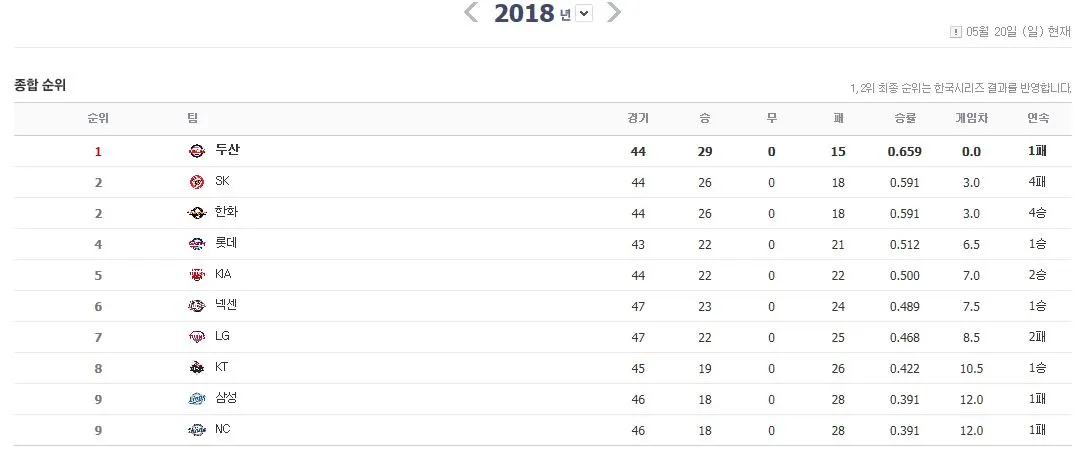 ※ 전임 감독 퇴임후 1년, 기록으로 보는 한화의 변화 (144게임 중 46게임 현재/ 단독2위)