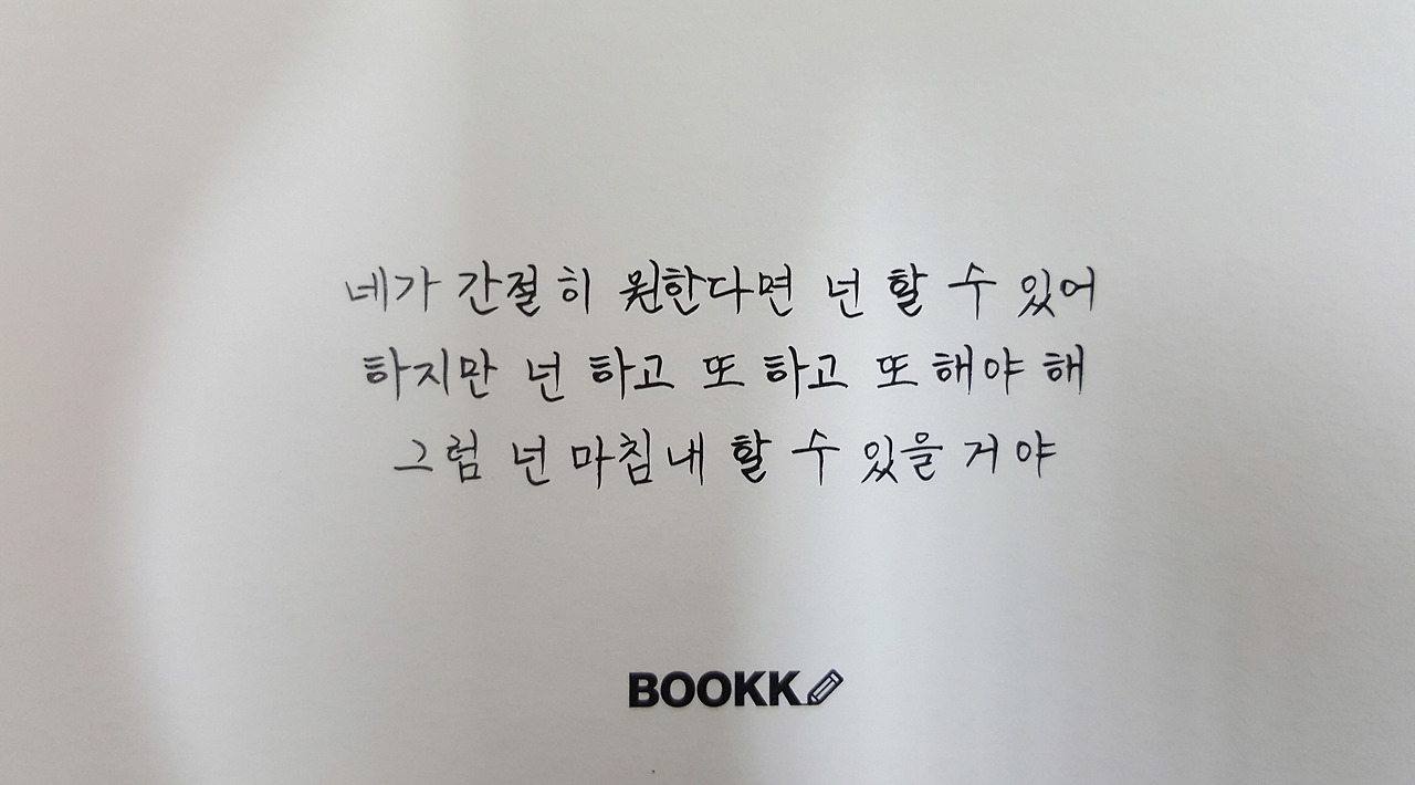 "네가 간절히 원한다면 넌 할 수 있어. 하지만 넌 하고 또 하고 또 해야 해. 그럼 넌 마침내 할 수 있을 거야" -BOOKK-