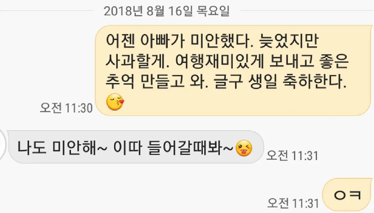 아들에겐 문자로, 진행 담당자에겐 구두로 미안함을 표했다.