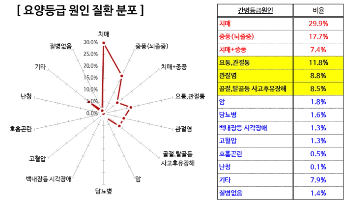 물론 간병 등급 판정자중 치매 환자가 가장 많은 건 사실이지만 요양 등급 판정과 관련하여 절대 외면할 수 없는 위험은 따로 있습니다.