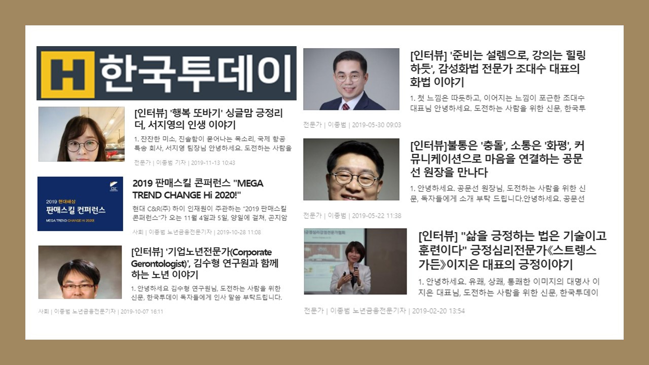 "매일경제 우버人"에 "제3의 나이"라는 제목으로 칼럼을 연재하게 되었고, 도전하는 신문 한국투데이에서 객원기자로 활동하며 〈저자 인터뷰〉〈명강사 인터뷰〉그리고 사회에 긍정적 영향력이 행사되는 곳을 취재하며 글을 올릴 수 있게 되었다. 뿐만 아니라 한국 보험신문에 60+ Life story라는 제목으로 노년기 삶에 대한 글을 연재할 예정이다.