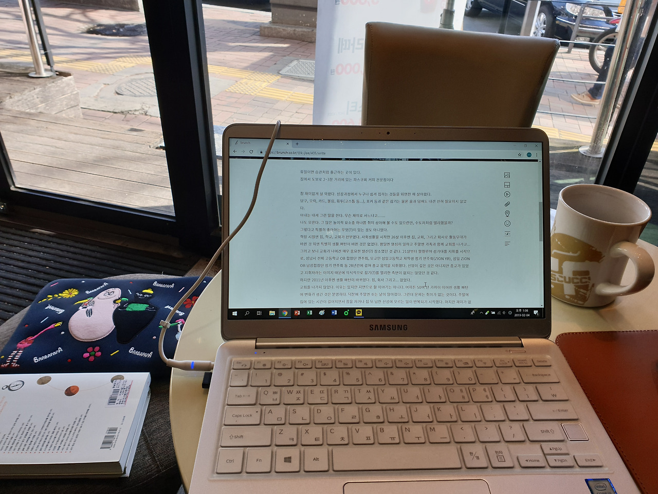 글쓰기는 집중할 수 있는 공간이 필요하다. 처음엔 집에서 시작했다. 하지만 우리 집 푸들 강아지 두 마리가 방해물이 될 거라는 생각은 하지 못했다. 글쓰기를 시작하면 어김없이 다가와서 내 무릎에 않겠다고 낑낑 댄다. 그 소리 때문에 무릎에 앉히면 또 한 마리가 낑낑대고... 할 수 없이 컴퓨터를 덮어야 했던 일이 한두 번이 아니다. 그러던 어느 날, 우연히 카페에서 글을 쓴 적이 있었다. 잔잔한 음악이 흐르고 강아지의 방해가 없다 보니 글쓰기에 집중할 수 있었다.