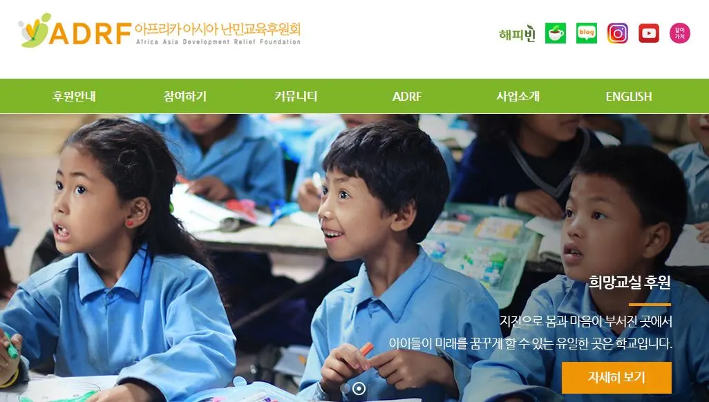 HOPE = EDUCATION이라는 슬로건으로 아이들을 위한 학교교육과 인성교육 지원에 최선을 다하고 있다. 교육의 혜택을 받지 못하는 아동과 청소년들이 ADRF의 교육지원을 통해 미래에 대한 꿈을 갖고, 그 꿈의 실현을 위해 매진하고 있으며, 현재 라이베리아, 세네갈, 케냐, 에티오피아, 몽골, 미얀마, 인도네시아, 네팔, 라오스, 필리핀, 말레이시아, 팔레스타인, 캄보디아, 탄자니아 14개국 21개 희망교실에서 다양한 교육지원사업을 전개하고 있다.