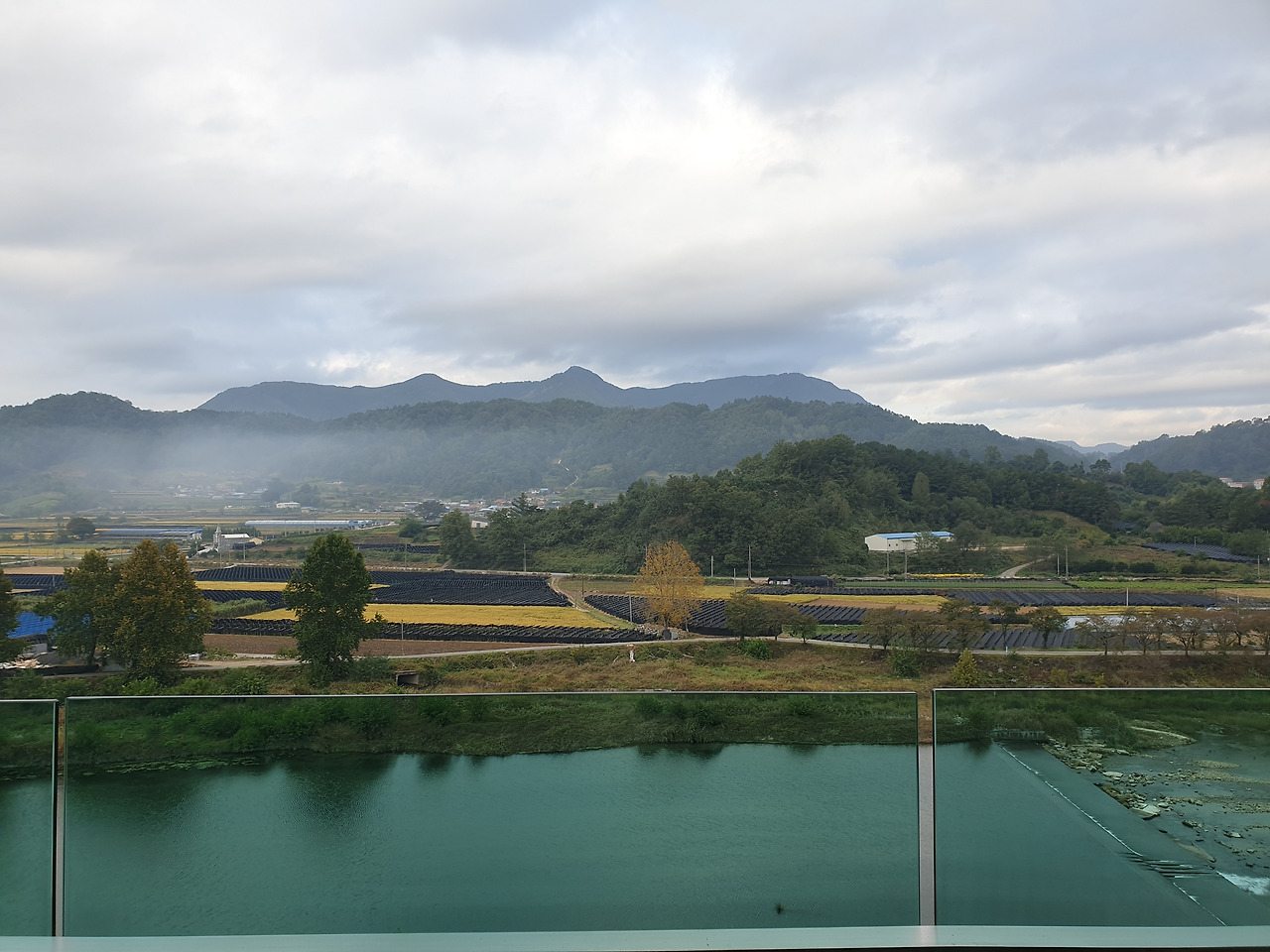 현대해상 금산 연수원 319호 거실에서 바라본 아침 전경오늘은 물안개도 피지 않았다, 아침이면 자주 볼 수 있었는데