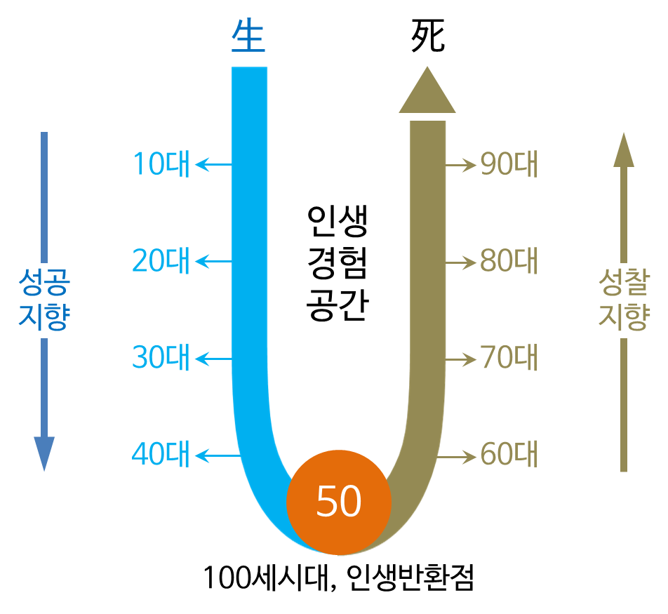 100년 인생에서 50세는 인생의 반환점이다. 그렇다면 인생의 후반전을 어떻게 보내야 할지 고민해야 한다. 젊을 땐 성공을 향해 질주하는 삶이었다면 그 이후는 자신에게 집중하는 성찰이 필요하다. 그러려면 자기 성찰의 시간이 필요하다. 필자는 그 나이가 50세라고 생각한다.