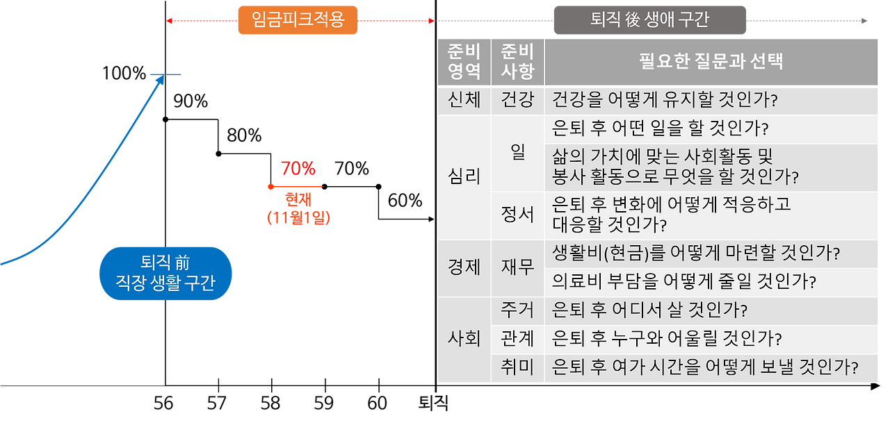 3년 전, 임금 피크를 수용할 것인가? 프리랜서 강사의 길을 갈 것인가? 선택을 해야 하는 시간이 있었다. 아내의 의견은 단호했다. 정년까지 직장 생활을 원한 것이다. 안정된 직장에서 무사히 퇴직하길 바라는 아내의 생각을 외면하는 게 쉽지 않았다. 퇴직 후 보험과 노년을 아우르는 산업강사의 길을 준비하면서도 퇴직 후 삶에 대한 불안감이 컸던 것도 사실이다. 이유야 어떠하든 필자는 임금 피크를 수용했다. 그리고 2019년 11월 1일을 시작으로 벌써 3년 차에 해당하는 구간을 지나고 있다.