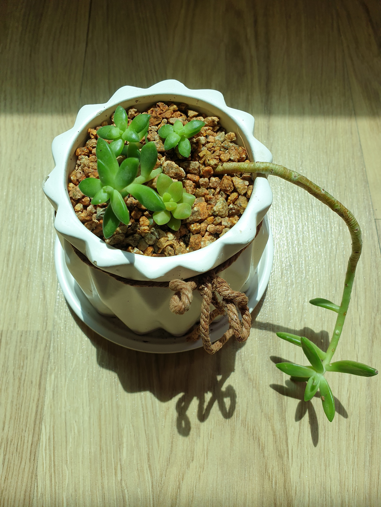 테라스에 있는 소형화분 하나를 집었다. 다육이를 많이 키우는데 상태가 좋지 않은 다육이가 있어서 분갈이를 할 참이다.