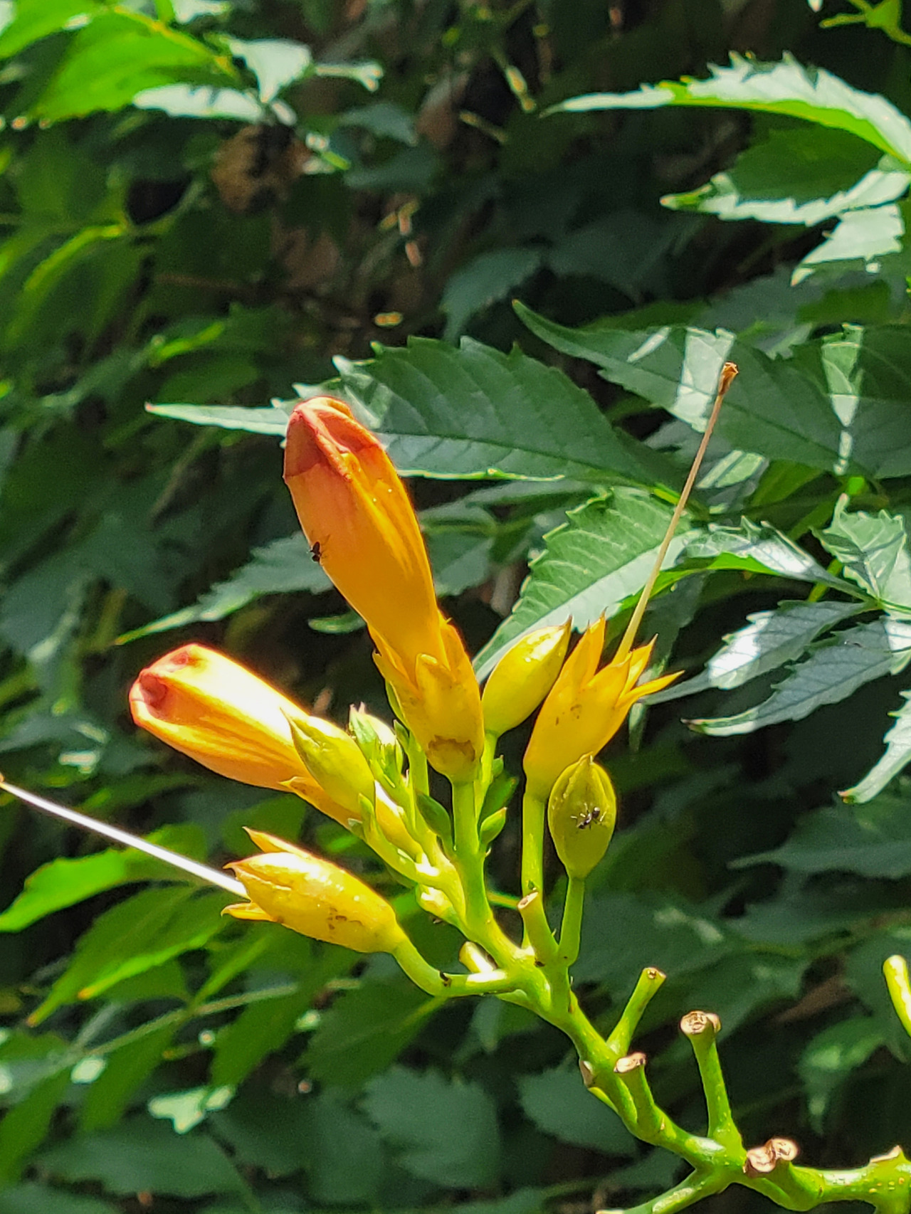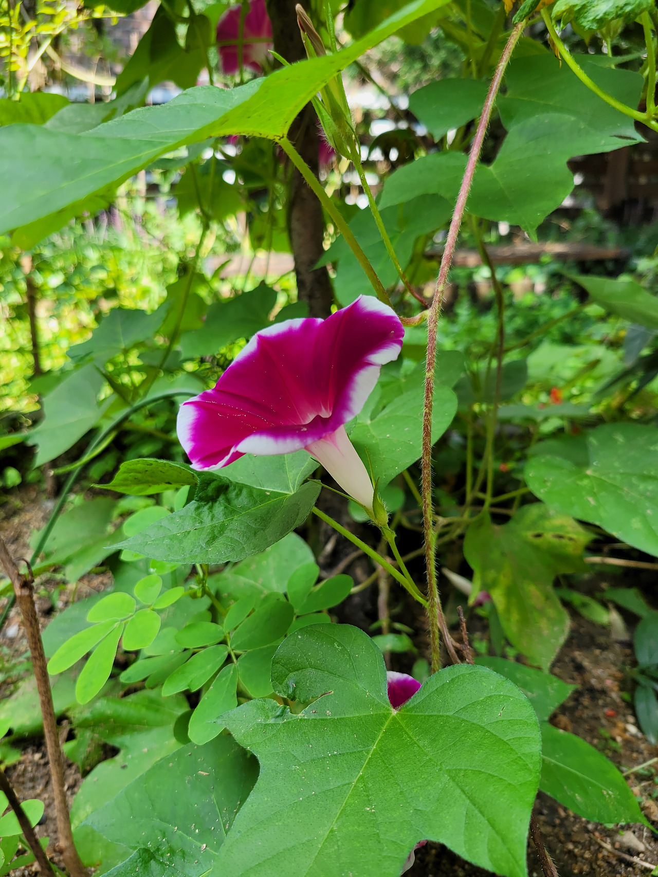 단풍나무를 타고 오른 호박 잎