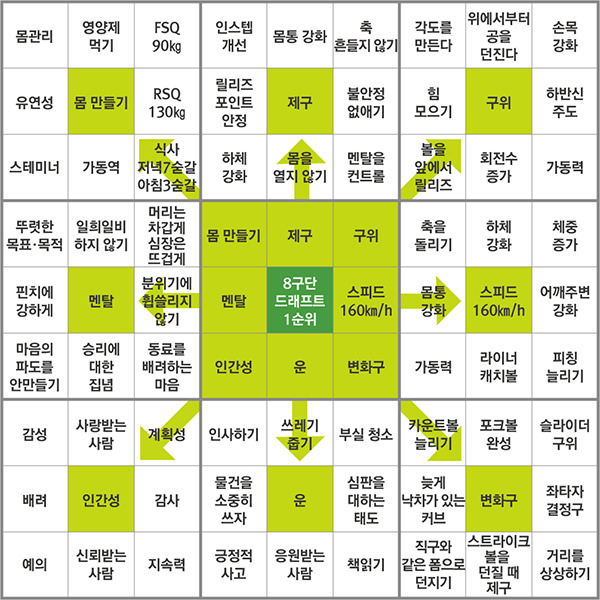 위 표는 세계적으로 유명한 오타니 쇼헤이의 목표 달성표인데요. 중앙 하단에 운에 관한 표가 있습니다. 위 표에서 보이듯 덕을 쌓는 방법은 간단합니다. 쓰레기를 줍고 물건을 소중히 쓰고 인사하고 긍정적으로 생각하고... 간단해 보이지만 쉽지만은 않죠. 나만 보면 으르렁대는 김 팀장에게 웃음으로 대하기가 쉽지 않은 것처럼요. 하지만! 여기서 우리는 카르마의 작동 원리를 다시 한번 더 눈여겨봐야 합니다.