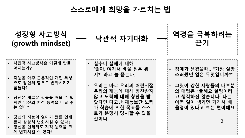 마지막으로 저자가 말하는 그릿을 기르는 방법 과 나름대로 정리한 페이퍼들을 소개한다.