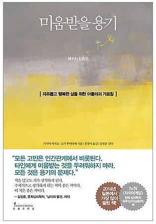 자네가 불행한 것은 과거의 환경탓이 아니네. 그렇다고 능력이 부족해서도 아니고 자네에게는 그저 ‘용기’ 가 부족한 것 뿐이야. 말하자면 ‘행복해질 용기’ 가 부족한 거지, 행복해지려면 ‘미움받을 용기’ 도 있어야 하네 그런 용기가 생겼을때 자네의 인간관계는 한 순간에 달라질 걸세.