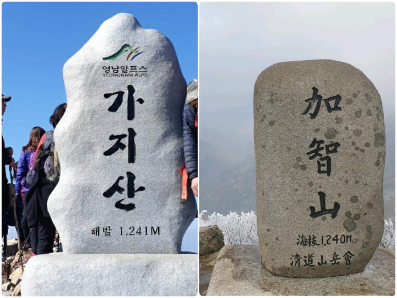 예전부터 있던 사립 정상석은 1,240m라는데, 약간 아랫부분에 위치한 공립 신정상석은 1,241m라고 표기되어 있다. 국토교통부 공식 해발 1,240.9m라는 소숫점 측정 결과가 가져온 해프닝이다. 1m 손해이긴 하지만 모양이든 크기이든 간에, 세금을 쏟아부은 거대 정상석보다는 지역 산악회가 정성을 갹출한 개성있는 정상석이 훨씬 마음에 드는 모양새다.