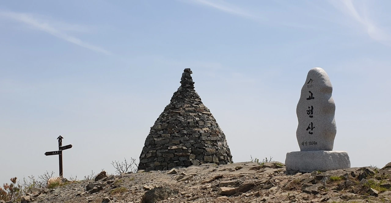 고헌산의 정상석은 특이하게도 북쪽을 바라보고 서 있었다. 2013년도에 지금의 정상석을 설치할 때 무엇인가 잘못된 좌향을 잡았을 것이다. 그러다 보니 해가 중천인 시간인데도 정상석에는 늘 그늘이 생겨버렸다. 울주군청에 민원을 넣는 분들도 있었지만, 처음 헬기로 안착시킬 때 피치 못할 사정의 결과물 이리라 짐작해왔다.