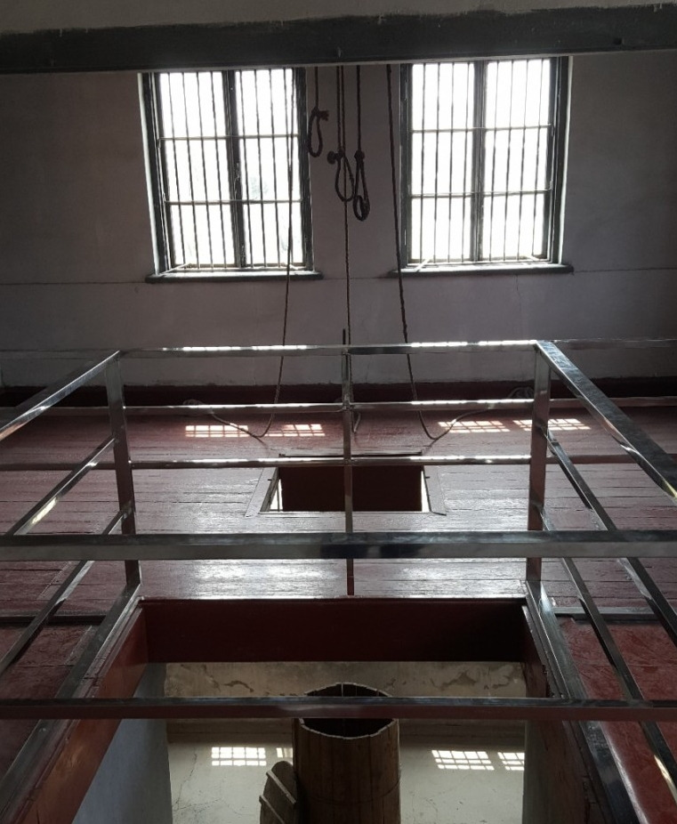 뤼순 감옥 사형집행장. 밑의 통관으로 사형수의 시신이 떨어져 접히도록 설계 되었다.