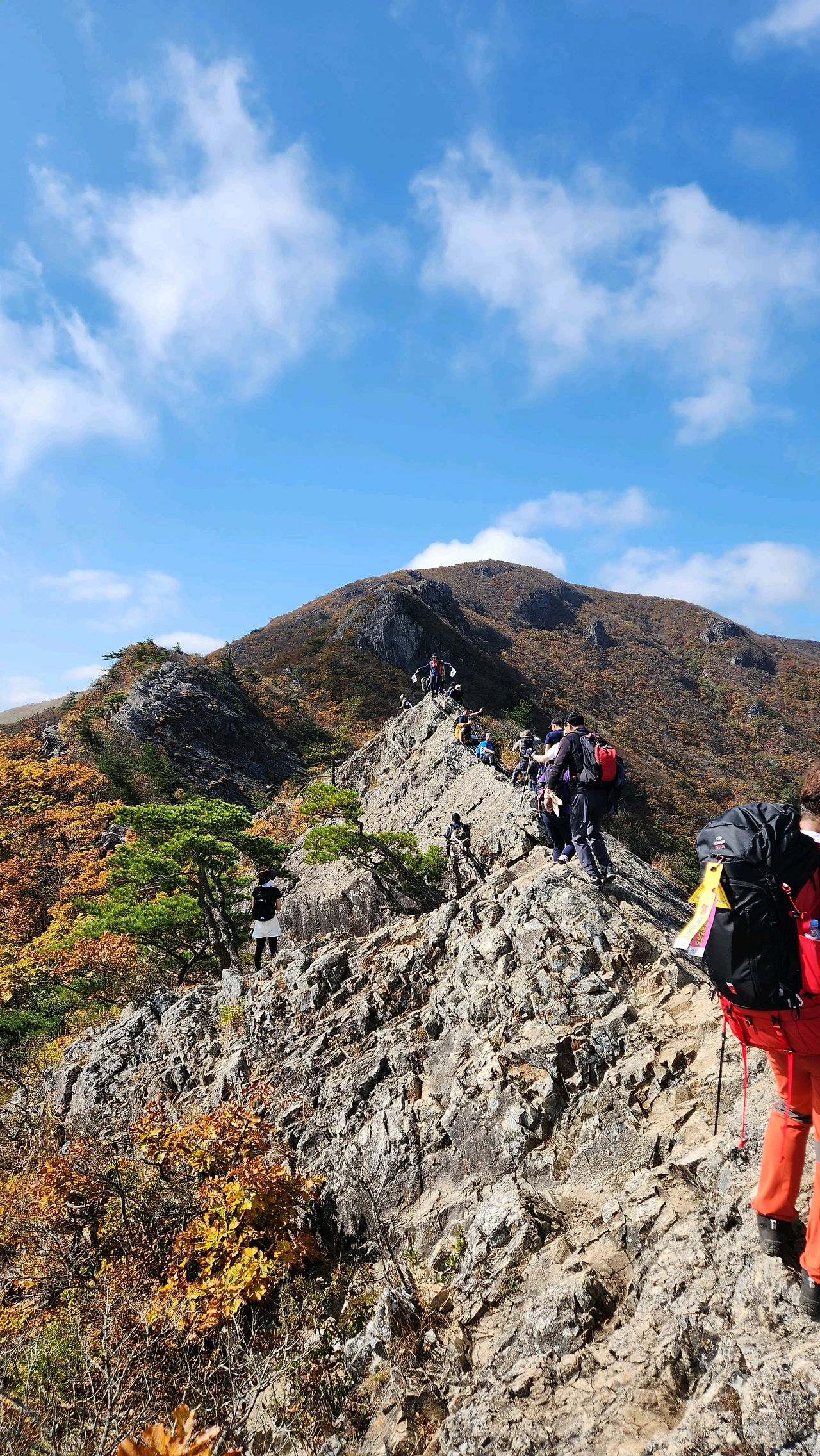 철탑과 철선이 머리 위로 지나 갈 예정인 신불산 공룡능선(칼바위)