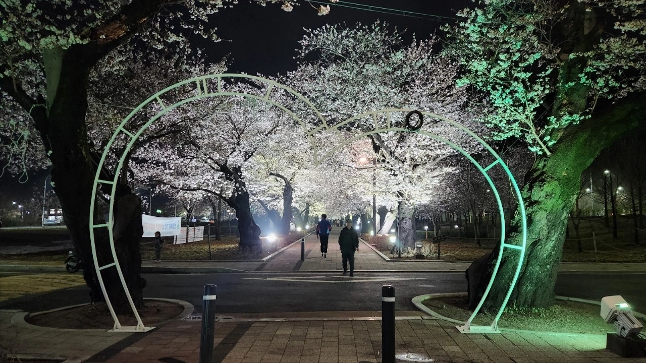 묵은 세월 탓인가, 핑크빛이기보다는 흰빛에 가깝다 보니 조명을 잘 받는 편이다. 한 세기를 훌쩍 지나 살아온 나무들이다. 축제 때 몰려드는 수만 명의 인파와 밤새 쪼사대는 조명 탓에 나무들이 보통 피곤한 게 아닐 것이다.