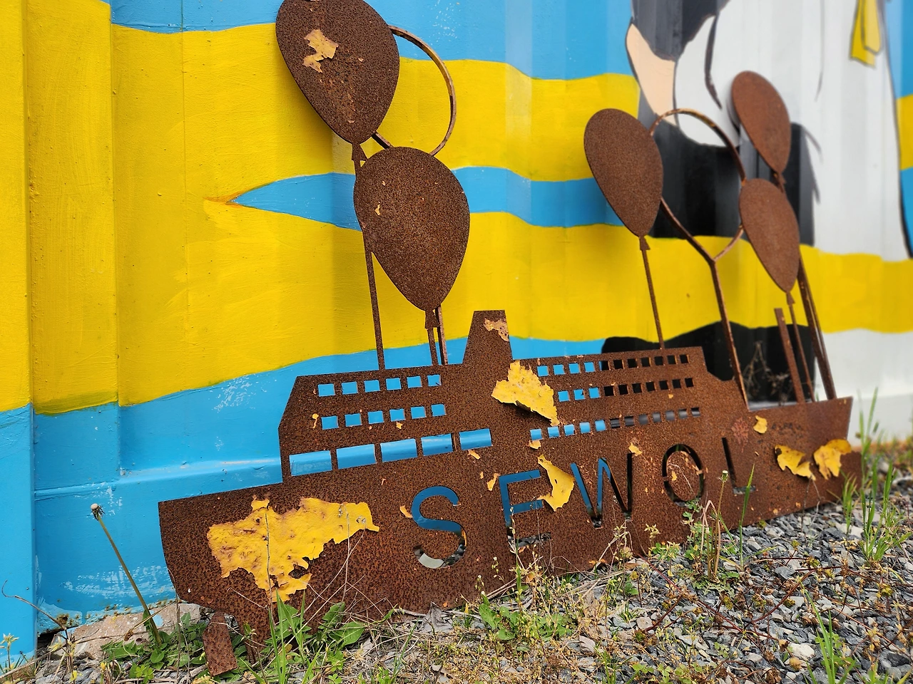오히려 더 녹이 슨 팽목 컨테이너 성당, 더 바랜 아이들의 사진, 어둠을 밝혀 줄 것이라 믿었던 진실은 점점 삭고 옅어져서 녹물을 흘리며 스산함을 더하고 있다.
