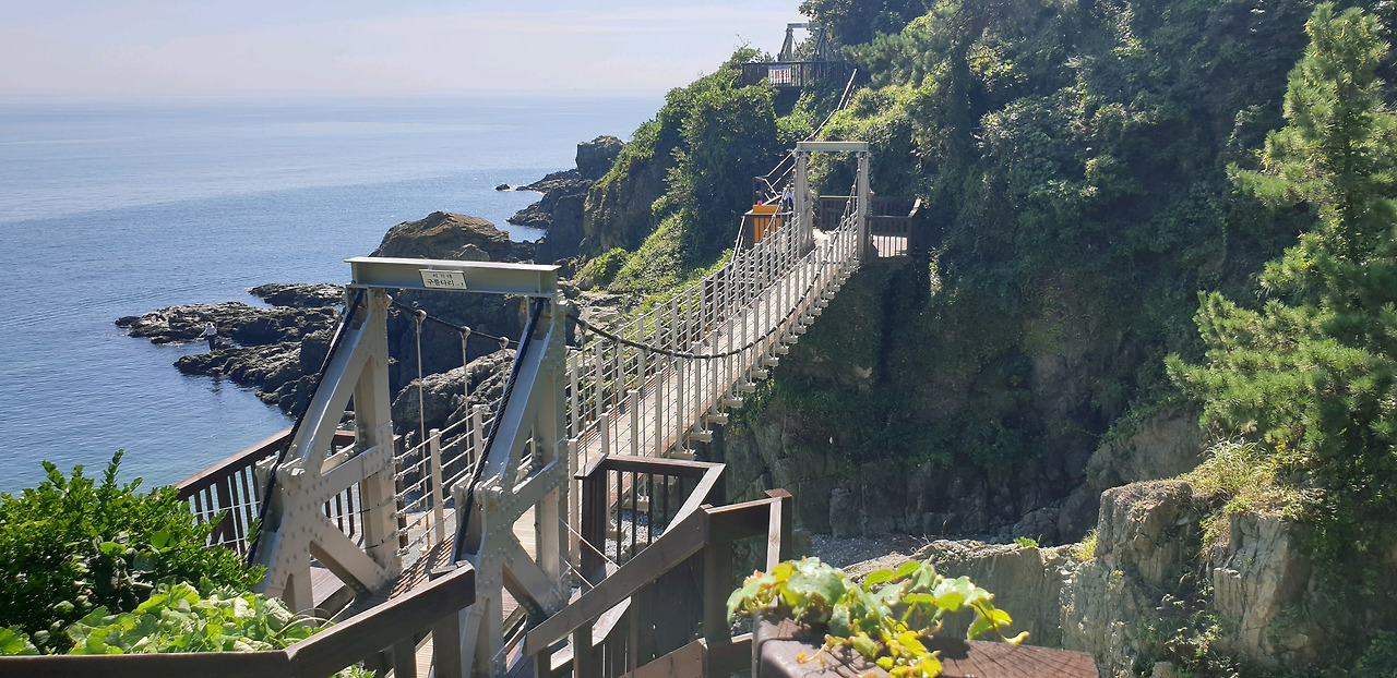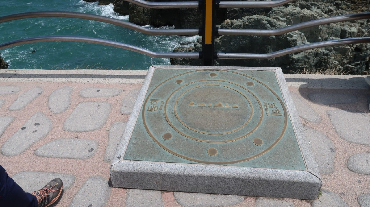 오륙도 해맞이 공원을 내려서면,바닷가 절벽을 이용해 조성한 스릴감 짜릿한 장소를 만나게 된다. 밑이 훤히 보이도록 바닥을 유리로 만든 오륙도 전망대 <스카이워커>의 짜릿함을 즐기시며 정성스레 '걸레질(덧신 착용 필수)'을 뽀드득뽀드득 해주신 후에,바닷가로 내려서시면 이곳이 동해바다와 남해바다의 경계지점이라는 표시판을 보실 수 있습니다. 난류와 한류의 교차점이라서 인지 해초들의 식생도 섞일 테고, 그러다 보니 물 색깔이 유독 더 아름답게 느껴진다.