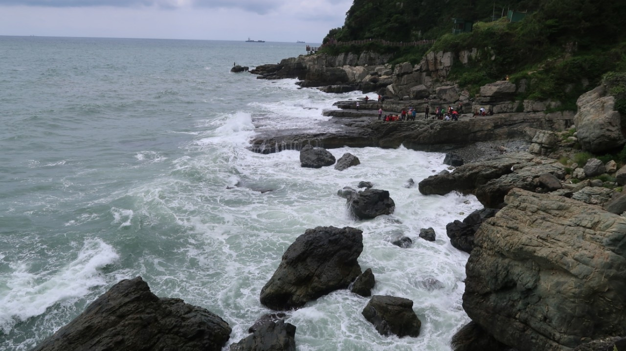 다들 아시다시피 바다를 접한 부산은 볼거리가 많은 도시이다. 6.25나 임진왜란 등을 거치며 바다를 통해 쏟아져 들어와 토착화된 해외 문물들이 있고, 수만 년 전 부산의 진산인 금정산과 해운대 장산의 화산 폭발이 만들어낸 태종대와 오륙도, 이기대, 신선대, 백운대 등등 도심 속의 ‘또 다른 세상’이라 할 수 있는 부산 시내 지질공원들이 광범위하게 있다. 그중에 "해파랑길"이라는 이름으로 새로이 조성된 이기대 해안산책로는 예전에는 군사보안구역으로 일반인의 출입이 엄격히 통제되었던 곳이다. 해안을 따라 걷는 전체적인 거리는 편도 4km 정도이며, 출발은 오륙도 스카이워커 쪽과 용호부두에 인접한 동생말(=동쪽 선창 끝)에서 하는 방법이 있다. 물론 중간중간 순환도로와 연결되는 탈출로가 있기는 하지만 이왕지사 걸을 요량이면, 끝에서 시작해서 끝을 보는 게 가장 좋을 것이다.