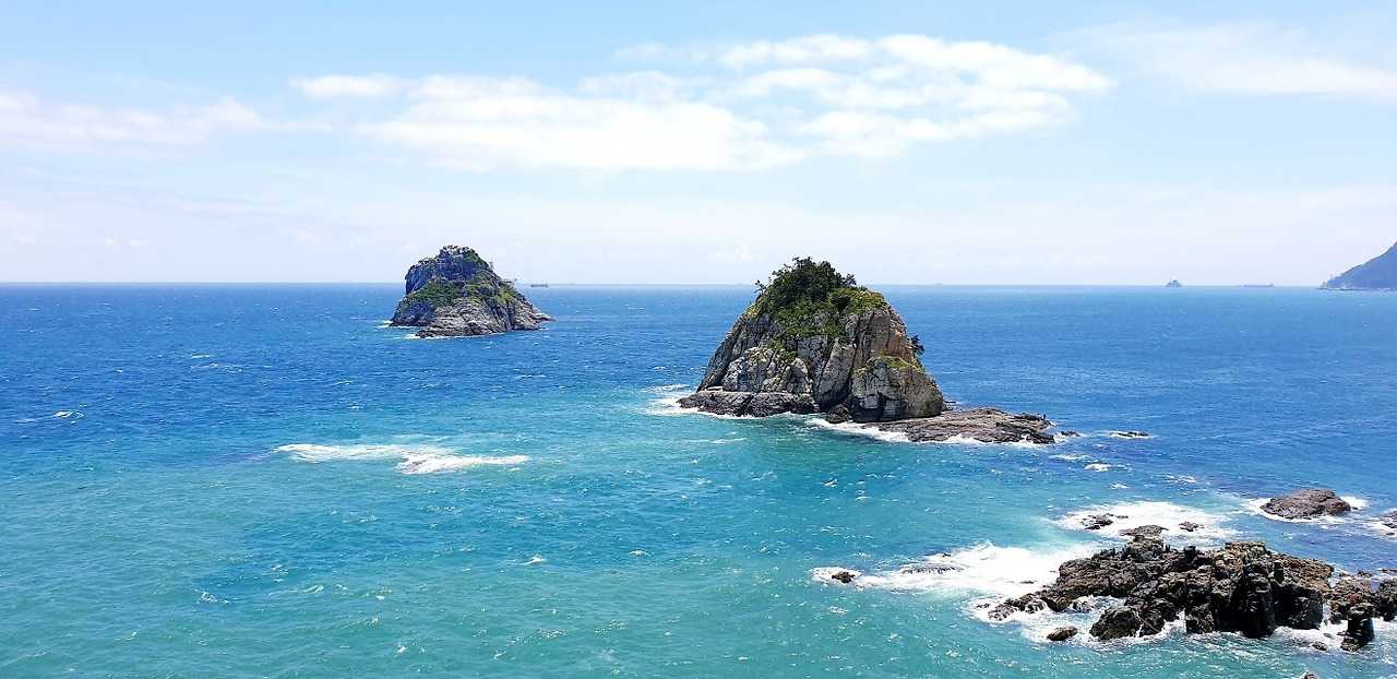 세상 시끄러운 소리 다 막아주는 파도소리에 귀까지 즐거워지니 이야말로 오감만족의 휴양이 아니겠는가. 끊임없이 걸음을 멈추게 하는 절경과 비경들에 취해 비틀거리고, 종이컵 반 컵쯤의 땀을 흘린 후에는 환상의 섬들을 만나게 된다. 바로 부산의 랜드 마크 오륙도이다.