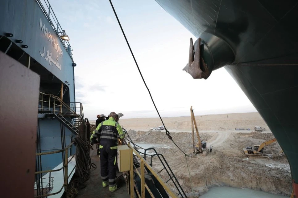 연일 세계의 언론들은 당연하게도 자본주의적인 셈법으로 사태의 추이를 살폈고, 밀어내기라도 할 태세를 갖춘 미군 항공모함까지 출동하는 초유의 상황을 맞이 하였지만, 천만 다행히도 운하 관리청과 구난업체가 벌인 각고의 노력으로 운하의 통행이 재개되었다. 제방에 박혀 있는 배의 머리 부분을 빼내기 위한 준설작업을 위해 시간당 2000㎥의 모래를 옮길 수 있는 특수 흡입식 준설선인 'MASHHOUR호'가 투입된 결과, 예상되었던 20,000㎥의 모래와 진흙을 무사히 퍼냄으로써 마침내, '에버 기븐호'의 부양에 성공한 것이다.