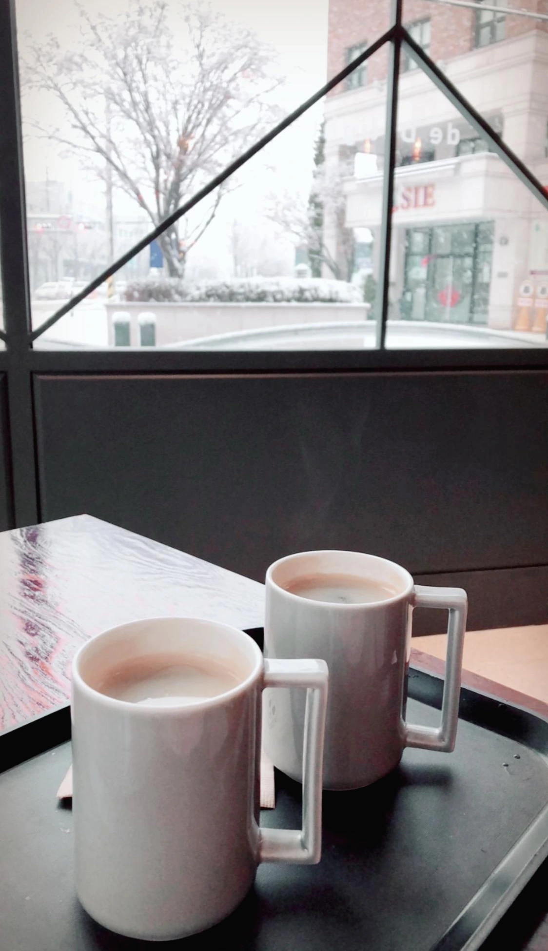 눈이 내려앉은 주말의 아침. 마음껏 눈을 만끽하고 커피 한잔의 여유를 즐겼다.