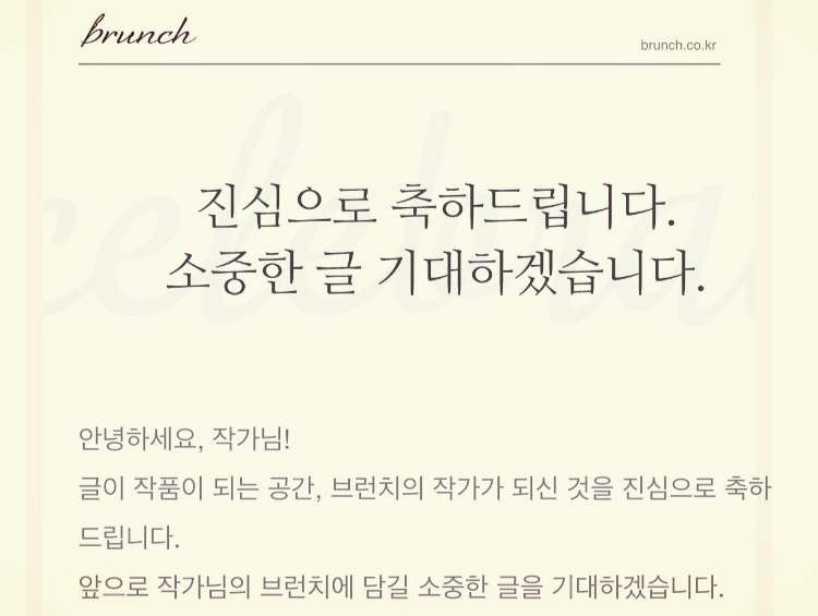 작가 신청을 하고 회신을 기다렸다. 그냥 대충 몇 개 글을 써서 신청했던 과거에 ‘거절’ 경험이 있던 나로선 거절받지 않을 ‘단칼 승인’이 필요했다. 이제는 매일매일 뭐라도 써야 했기에 반드시 승인 회신이 와야 했다.