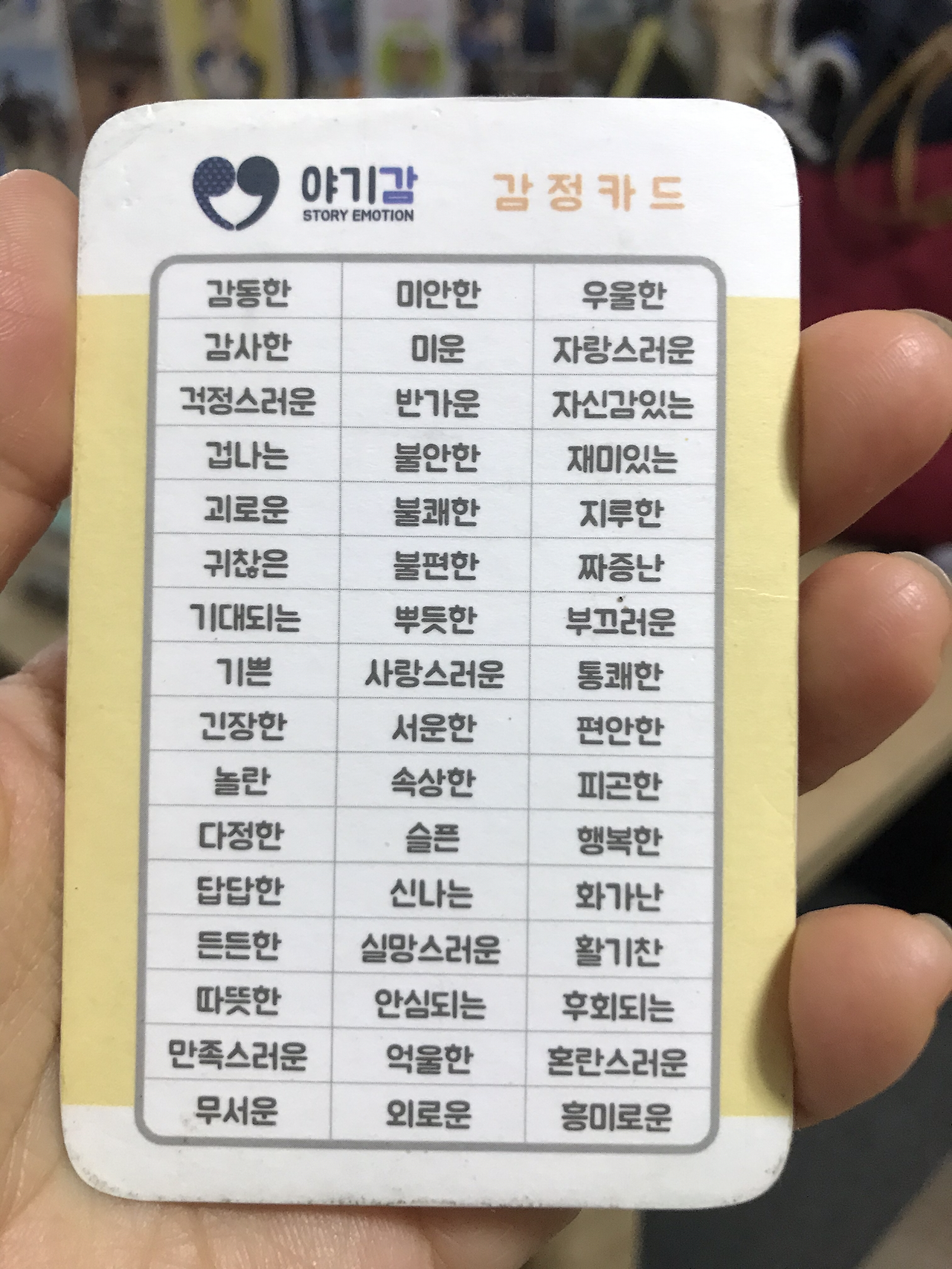 36살 때 일이었다. 7살 아들, 4살 아들 함께 아파트 놀이터 놀고 있는데 문자 한 통이 왔다."여진아 박경리 작가의 토지독서모임 할 건데. 너도 할래?"나보다 5살 많은 정화언니 문자였다. "네 할게요"하고 문자를 보냈다. 공부에 담을 쌓고 살았지만 글쓰기를 하고 싶었다. 박경리의 토지 모임은 한다고 했지만 몇 권이 있는지도 모르고 , 박경리 작가님이 누구인지 모르는 상태에서 모임을 참여했다. 모임을 참여하고 나서 토지 책이 20권이라는 걸 알게 되었다. 독서모임 하던 중 키가 160센티정도 되고 커트머리에 옅은 쌍꺼풀에 체격이 작고 정도 되는 나보다 6살 많은 언니가 나에게 질문을 했다 "여진씨는 왜 항상 감정으로 감춰요?"당황스러워서 "네. 제가 그랬나요. 몰랐는데요."머릿속이 혼란스러웠다."감정을 숨기려고 애쓰는 모습이 보여서요. 있는 그대로 감정을 표현을 해도 괜찮아요. "나는 내 감정을 숨기고 있다는 몰랐다. 독서모임이 끝나고 집으로 걸어가는 길 인도 옆에 가지런히 있는 나무를 보면서 생각을 했다. 나는 왜 감정을 숨기고 살았지? 언제부터 숨겼을까? 어린 시절부터 상담원이 되기까지 감정을 숨기면서 살았다. 긍정적인 감정을 사람들에게 보여주지만 두려움, 화, 우울 등 감정 감추려고 살아왔다는 걸 알게 되었다. 부정적인 감정은 나쁜 감정이라서 생각을 하고 사람들에게 좋은 모습을 보이고 싶어서 애쓰면 살았다. 내 중심이 아닌 타인이 바라는 모습으로 나를 맞혀가면서 살아가고 있다는 걸 알게 되었다. 독서모임의 언니 말처럼 내 감정을 솔직하게 표현하는 게 나쁜 게 아닌데 이제부터 솔직하게 표현하고 살아야겠다 다짐한다. 나쁜 감정을 표현하는 건 싶지 않았지만 구로학습지원센테에서 하는 부모 수업 감정감정코칭에서 배우고 나서 관점이 달라졌다. 강사님께서 세상에는 나쁜 감정은 없다. 감정을 다스리는 나쁜 방법만 있을 뿐이다. 두려움 감정은 긍정적 역할, 화는 긍정적인 역할, 우울는 자아성찰가 예술가 감정이다. 부정적인 감정이 나쁘다고 생각했는데 도움을 주는 감정들이었다. 우리가 느끼는 모든 감정은 나쁜 감정이 없다는 걸 알게 되었다. 내 감정을 좀 더 알기 위해서 심리학을 공부하는 친구에 부탁해서 434개 감정을 이메일로 받고 프린트를 했다. 프린트를 해서 거실 창문에 붙였다. 육아를 하다가 보면서 감정이 튀어나올 때 어떤 감정을 알아가는 연습을 했다. 현재 지금 내가 느끼는 감정을 알아가는 것도 나에게 많은 도움이 되었다. 내 감정을 알아가니 긴장과 불안 스트레스가 낮아지고 삶이 가벼워졌다. 434개 감정이 아니더라도 휴대폰 뒤면에 있는 감정을 자주 들려다 본다. 감정을 숨기지 않고 살아가니 넥타이를 조여서 답답했는데 풀어져서 편안하고 행복한 삶을 살아가고 있다.