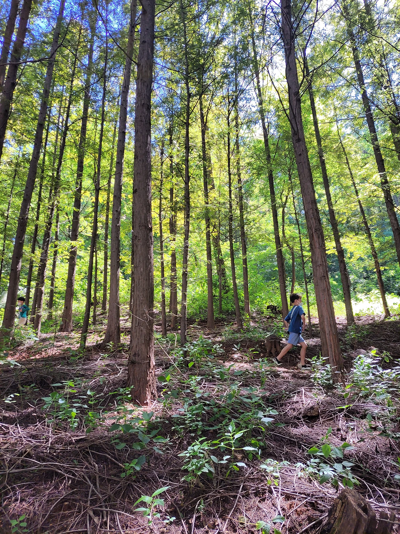 산을 3바퀴 정도 돌고 나서 메타 콰이어 나무 숲길 입구에 들어선다. 이곳은 우리 동네에서 제일 좋아하는 장소다. 고개를 들어 하늘 높이 가득 채워져 있는 메타 콰이어 나무 보면서 심장이 뛴다. 여기선 어린아이가 되어서 달리거나 점프도 한다.
