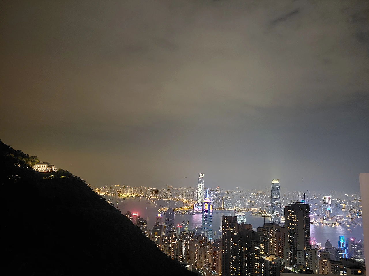 피크트램에 탑승해 출발한 하면서 서서히 경사가 25도까지 기울어지며 정말 힘들었다. 이렇게 급경사가 있을 줄은 상상도 못 했다. 사실 여행은 남편이 준비했기 때문에 나는 미리 알지 못했다. 탑승하면서도 사람이 많아 싸움이 일어나는 걸 보니 불안함이 밀려왔다. 겨우 피크타워에 도착했지만, 또 올라가야 했다. 그 순간 체력이 다 떨어진 상태에서 아이들까지 신경 써야 했기 때문에 야경을 제대로 즐길 여유가 없었다. 게다가 사람들로 가득해 야경을 볼 자리를 찾는 것도 쉽지 않았다.