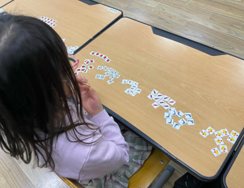 "자, 선생님이 나눠 준 작은 카드를 같은 걸로만 모아보세요. 대신 아주 보기 좋게 정리하며 분류해 주었으면 좋겠어요."