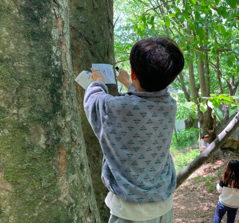 3-4교시는 '나무야, 사랑해~'라는 봄 교육과정의 마지막꼭지. 어린이날이 지난 그 다음주부터는 본격적으로 '가족'으로 들어갈 예정이다. 오늘 수업은 어제 생태연수로 진행된 프로그램 중 하나를 써 보았다. 교육과정에는 내 나무의 이름도 알고 가꾸고자 하는 마음을 갖기인데, 생태전문가는 조금은 결을 달리 접근했다. 저학년은 굳이 나무이름을 외워 알 필요까지는 없다는 것. 저학년 아이들에게는 나무와 친숙해지는 과정이 더 중요하다는 것. 그래서 라벨지에 학교 주변에 내 나무로 정하고 싶은 곳에 가서 어울리는 이름을 쓰게 하여 붙여 놓고 서로 그 이름의 의미를 되새기는 것을 먼저 하자는 것.