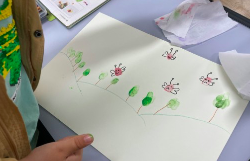 오늘 아침 차는 '누룽지'차였다. 차가 떨어져 교무실로 가서 차를 구하는데, 아침지기 삼총사가 재잘거리며 나를 따라왔다. 그렇게 다시 교실로 들어가 차를 끓이고 아이들을 맞고 옛이야기로 아침 시작을 했다. '먹여주고 재워주고'라는 옛이야기를 들려주니 배꼽을 잡고 웃는다. 또 한편 들려주면 안되냐는 말을 뒤로 하고 곧바로 첫 수업을 들어갔다. 오늘 수업은 봄의 마지막 수업으로 '봄풍경'을 지문도장을 찍어 그려 보는 것이다. 각양 각색의 잉크패드를 준비하고 도화지를 나눠주며 하는 법을 가르쳐 주었더니 다들 제법한다. 나름의 봄풍경을 그리는 과정과 모습이 참으로 평화로워 보였다. 세상이 이렇게 평화로웠으면 할 정도여서 수업영상을 찍어 우리반 보호자 단톡방에 올리며 무사한 하루 보내시라 했다.