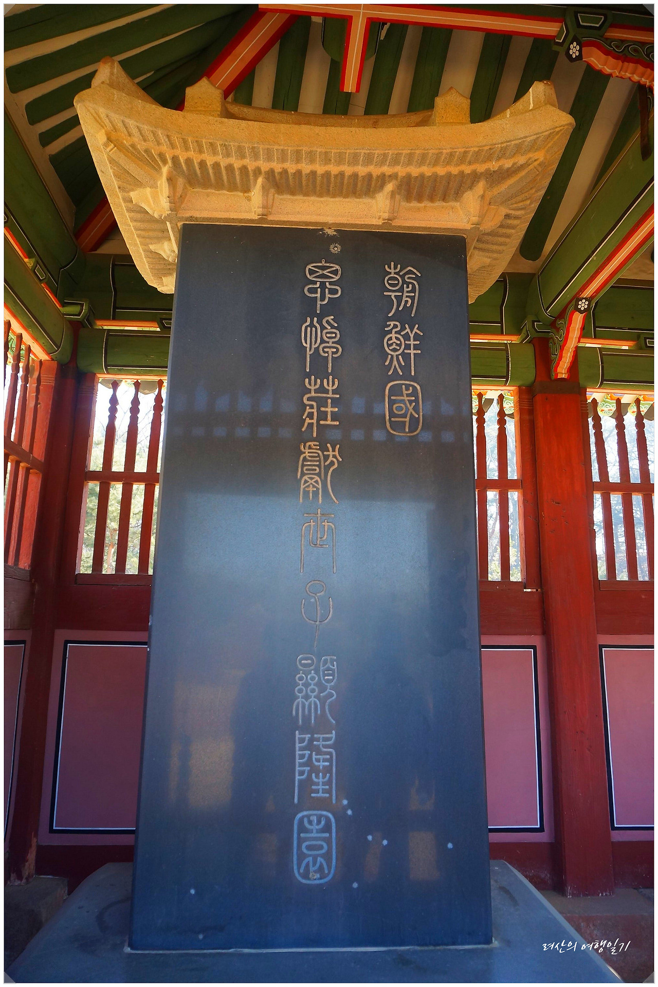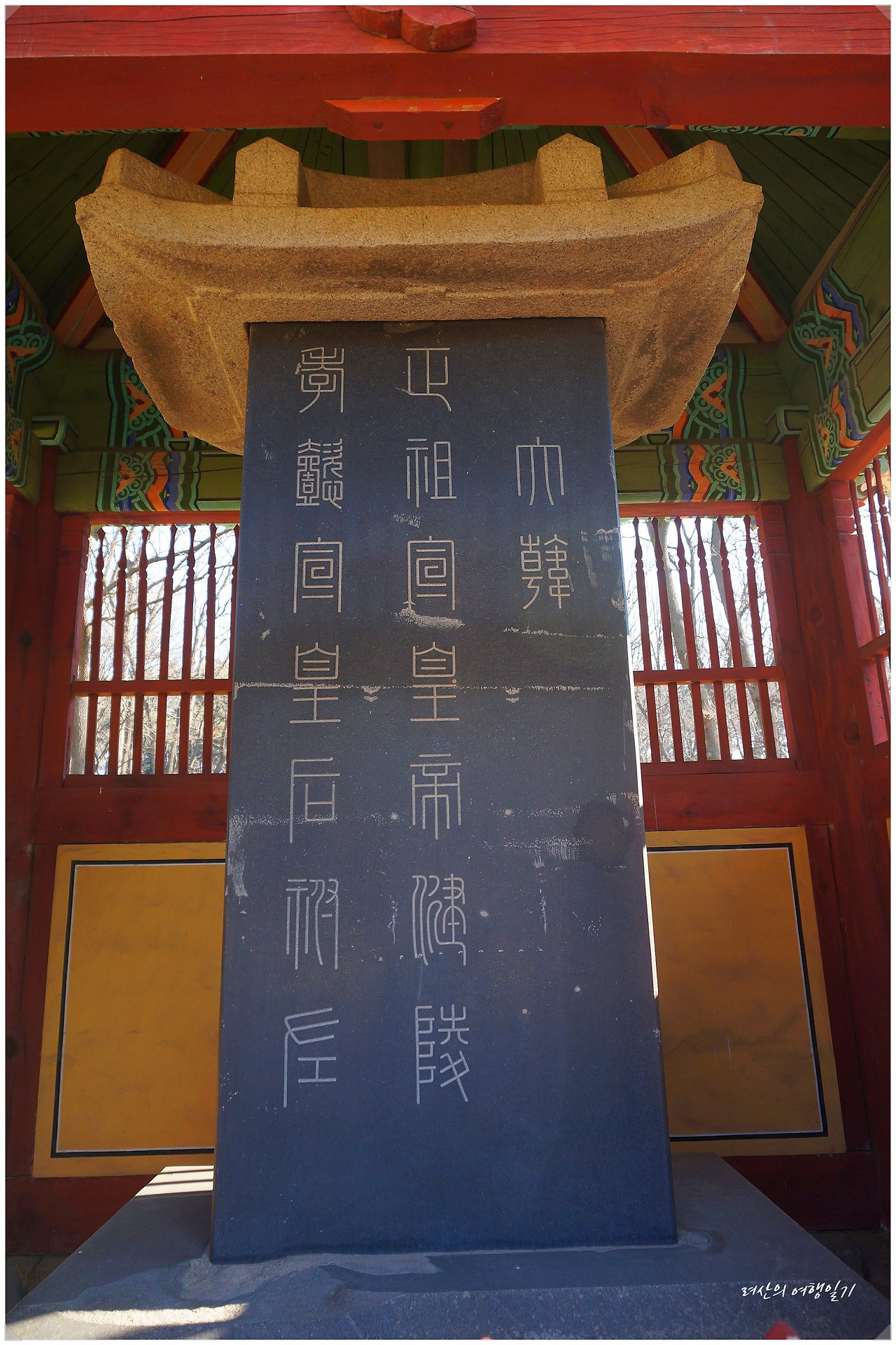 정조의 효심을 생각하면서 비각으로 발걸음을 옮겼다. 건릉 비각안에는 비문이 있는데 정조와 효의왕후에 대한 생애를 기록해 놓았다. 건릉의 비각은 고종때 정조를 황제로 추존 하면서 비각이 건립되었다. 여기서 의문이 드는 것이 하나 있는데 추존 되기전 비각은 어디로 갔을까? 아니면 비각이 있었는데 황제로 추존 되면서 이전 비각은 없어진 것일까?