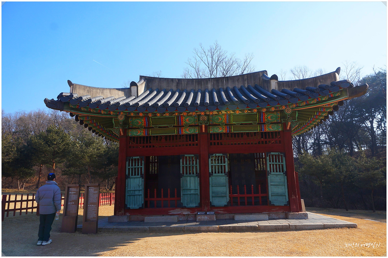 융릉을 뒤로 하고 우측에 있는 비각으로 가보았는데 자세히 보면 비각이 2개이다. 다른 왕릉들은 한개의 비각이 조성 되어 있는데 이곳은 왜 2개일까? '비각'이 2개인 이유는 사도세자 사후 경기도 양주 영우원에 뭍혔다가 이곳으로 이장을 하면서 세자시절의 비각도 옮겨왔다. 그리고 대한제국이 선포되고 고종이 황제가 되면서 사도세자를 '장조'로 추존 한뒤 비각이 추가 되었다. 즉 세자시절의 비각과 왕으로 추존 되면서 비각이 조성 되어 2개가 된것이다. 정자각 앞에는 비각에 대한 설명을 자세히 적어 놓았으니 이곳에 방문을 하면 한번쯤 읽어 보면 좋을 것 같. (현륭원 비문 및 표석 / 융릉 비문 및 표석)