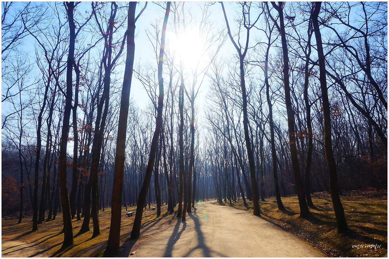 융릉에 작별을 고하고 아들이 잠들어 있는 건릉으로 향하였다. 건릉으로 들어가는 소나무 숲길의 푸른잎은 온데간데없고 앙상한 나무들만 남아 환영을 해주었다. 떨어지지 않고 메달려 있는 낙엽들도 쓸쓸해 보였지만 따뜻한 햇빛이 그남아 필자가 걸어가고 있는 길을 환하게 비춰주었다.