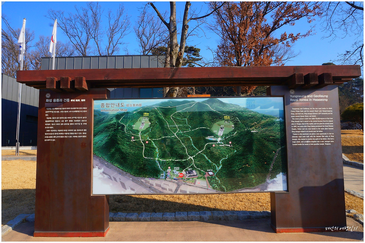 이른 아침 서울을 출발해 '융ㆍ건릉'에 도착 하니 오전 10시쯤 되었다. 종합안내도를 보고 동선을 정해보았고 안내도 왼쪽에는 융ㆍ건릉에 대하여 소개를 해놓았다. 화산 자락에 자리한 융ㆍ건릉은 생각보다 훨씬 웅장해 보였다.
