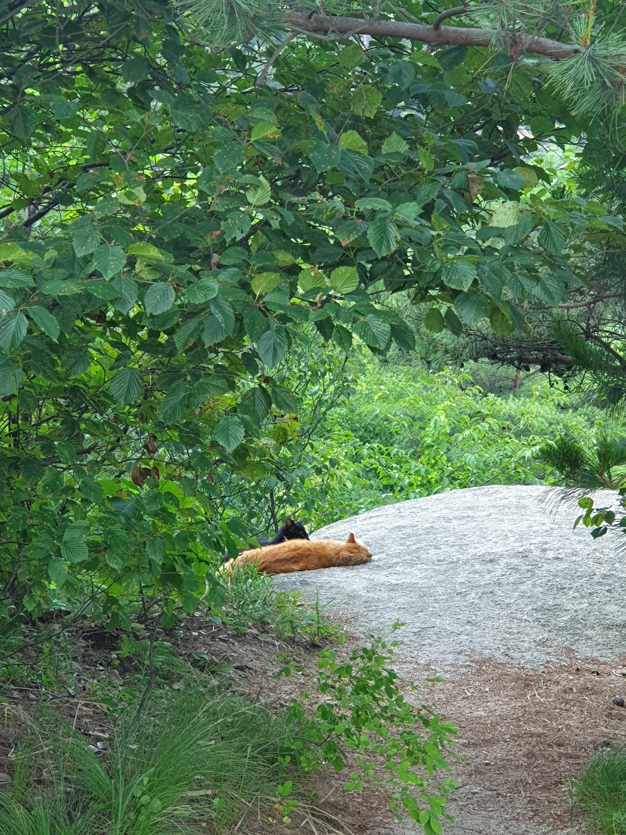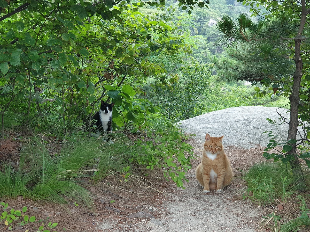 인왕산에 얽힌 이야기들을 생각하면서 걷다 보니 가파른 성곽 돌계단 우측 바위에서 길고양이를 만나게 되었다. 도심 속에서 설자리를 잃어버린 탓일까? 이 녀석들은 이곳까지 어떤 사연으로 오게 되었을까, 정말 불쌍하고 측은한 생각이 들었다. 하지만 내가 이 녀석들을 구 할 길은 없었고 자연의 법칙에 맡길 수밖에 없었다. 그리고 가던 길을 계속 이어나갔다.