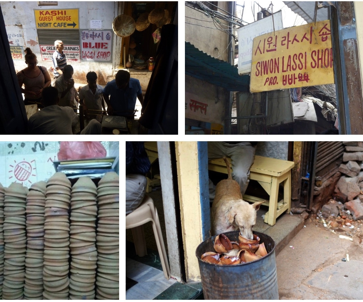 지붕 위 틈새로 비추는 햇빛 아래, 골목 곳곳에 쌓여 있는 알 수 없는 짐 더미와 어디로 통하는지 모르는 대문 몇 개를 지나치다 보니 그 유명하다는 라씨집 앞이었다. 새하얀 라씨, 현지인과 관광객은 물론 골목을 지나치는 개들 조차 모두가 좋아하는 라씨. 말로만 듣던 종이컵, 유리컵이 아닌 도자기에 담아 떠마시는 플레인라씨가 눈 앞에 쌓여 있다. 아기자기한 토기 그릇이 귀여워 한국으로 한 개 들고 오고 싶단 생각도 들었지만, 바로 눈 앞에서 다른 이들이 깨지 않은 그릇을 핥아먹고 있는 골목 개들을 보니 그릇을 깨야 다음 사람들이 강아지와 함께 컵을 쓰지 않을 것 같은 생각이 괜스레 들었다.